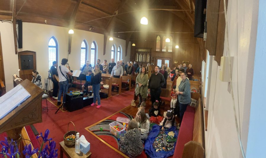 We have a play space up the front where parents are welcome to sit with their children while they play or use the streamers and children’s musical instruments in worship.